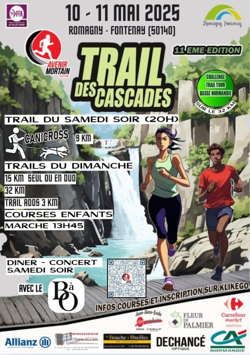 Trail en Solo ou Duo Ouvert de Cadets à Vétérans (masters). Une seule boucle avec 90 % de chemin. Particularité : passage par La Petite Chapelle de Mortain, la cote 314, les 2 cascades de Mortain et l’Abbaye Blanche Solo : boucle effectuée par un seul coureur Duo : boucle effectuée par 2 coureurs / changement à mi-course au lieu dit « champ de la fête à Neuneu », Le Neufbourg . Navette pour ramener le premier coureur au lieu de départ. Classement au cumul du temps des 2 coureurs