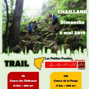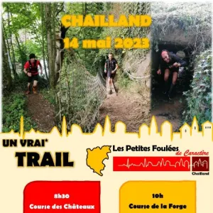 Les Petites Foulées de Caractère vous invitent à découvrir le territoire de Chailland (53), village labellisé Petite Cité de Caractère, et son patrimoine historique, architectural et paysager : forêt, rivière, bosquets, bocage, châteaux, moulins, lavoirs, chapelles et panoramas sont au programme ! Catégories autorisées JU->V5.