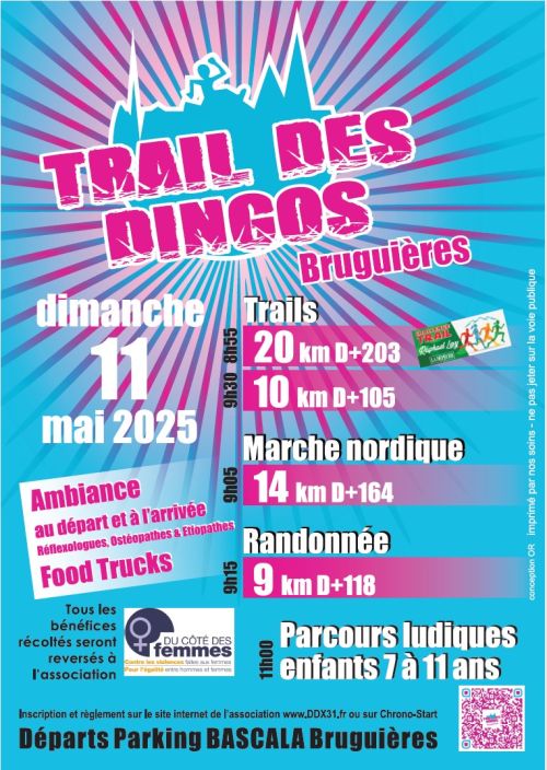 Les DDX seront heureux de vous accueillir à partir de 7h30 pour le Trail des Dingos. au profit de l'association "DU COTE DES FEMMES"