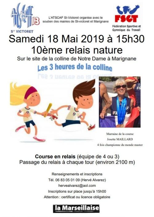 Relais par équipe de 3 ou 4 à partir de cadet Passage du relais obligatoire après chaque boucle (environ 2100 m)