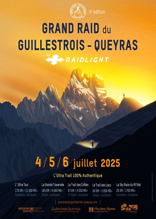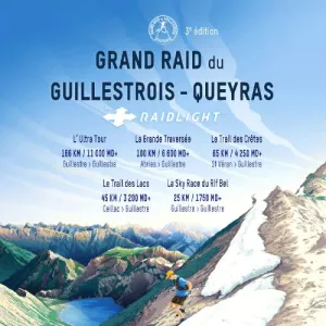 5 parcours d’exception pour un site d’exception ! Le Grand Raid du Guillestrois-Queyras est un magnifique tour de ce territoire du Queyras et du Guillestrois par les points les plus beaux. Un départ et une arrivée de Guillestre (aux portes du Queyras) ; 10 communes traversées ; 7 lacs d’altitude, 13 cols à plus de 2300 m ! et surtout une altitude moyenne sur le 170 km de 2085 m !
