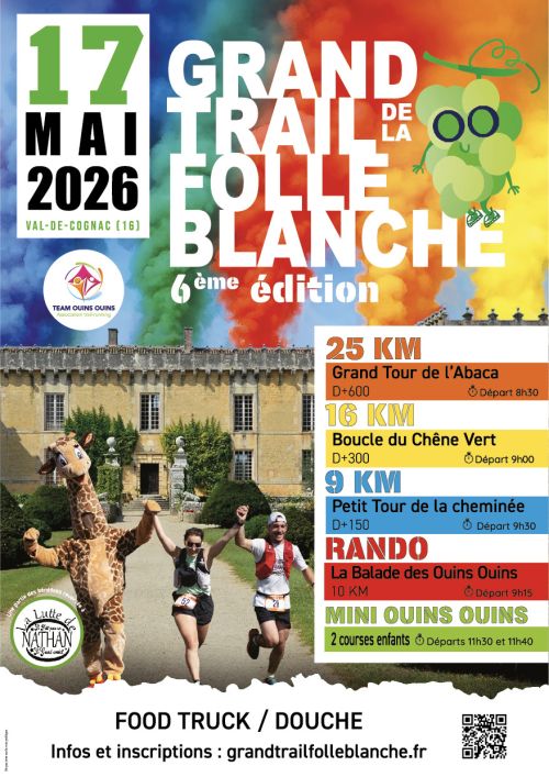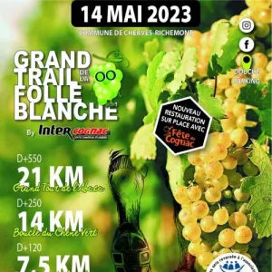 Le Grand Trail de la Folle Blanche est une course à pied hors stade de type Trail qui se déroule quasiment à 100 % sur chemin. Cette épreuve d’endurance qui conjugue aspect convivial, beauté des paysages et caractère sportif, nécessite un entraînement adéquat aux distances et dénivelés proposés. Le site de Cherves-Richemont, situé au coeur du vignoble Cognaçais est un cadre idéal pour le déroulement d’un événement de ce type.