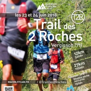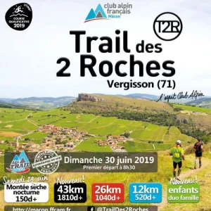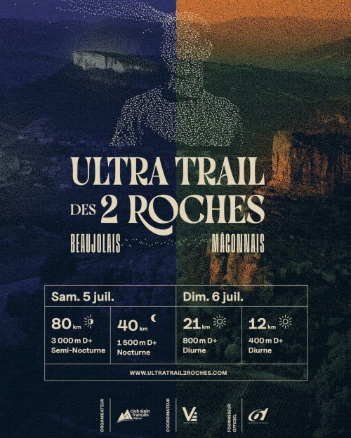 En 2025, le Trail des 2 Roches organisé par le Club Alpin Français de Mâcon (CAF Mâcon pour les intimes), devient l'Ultra Trail des 2 Roches avec l'arrivée de belles nouveautés. Le samedi, 2 nouvelles formules vous seront proposées afin de vous permettre d'explorer le Beaujolais par une chaude nuit d'été à l'image d'une SaintéLyon mais version estivale. Un 80 km (semi-nocturne en aller-retour) et un 40 km nocturne (départ à 0h00). Le dimanche, les formules 12 et 21 km diurnes restent au programme pour vous permettre d'en prendre plein les yeux avec comme terrain de jeux les magnifiques Roches de Solutré et de Vergisson.