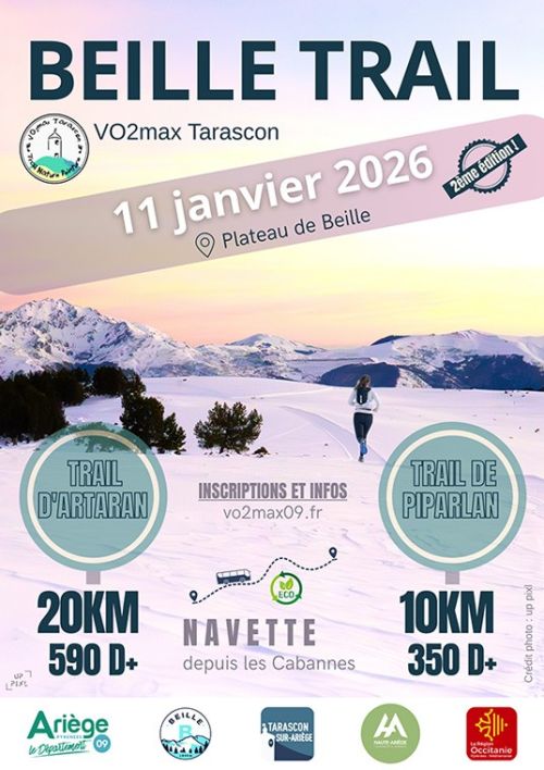 Le Beille Trail est un trail hivernal organisé sur le Plateau de Beille, station nordique située dans les Pyrénées ariégeoises, près de Tarascon-sur-Ariège et des Cabannes. Deux parcours sont proposés : le Trail de Piparlan (10 km, 350 m D+) et le Trail d'Artaran (20 km, 550 m D+), tracés sur les pistes enneigées offrant des panoramas sur la montagne. Venez courir en hiver dans cet environnement naturel et sauvage, une occasion simple de découvrir ou redécouvrir le trail blanc en Ariège.