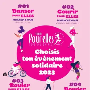 Journée festive et caritative, basée sur une course/marche de 5 ou 10 km, réservée aux femmes, et dont l'intégralité des excédents est reversée aux soins de supports. D'un projet familial, puis amical, notre évènement est devenu la première course féminine, caritative en région Rhône Alpes.