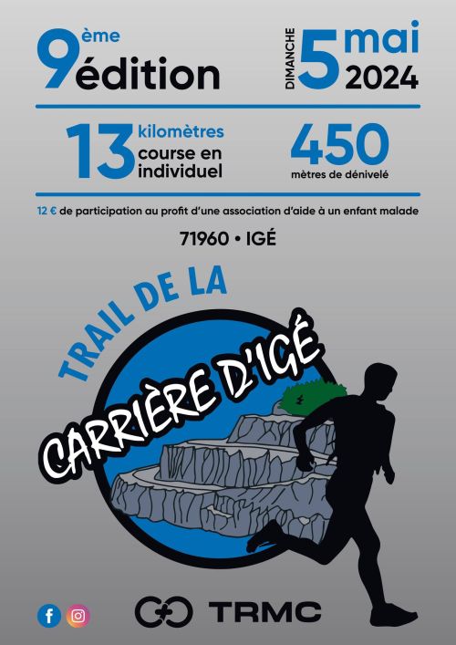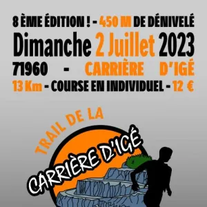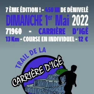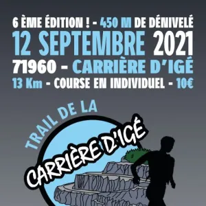 Le Trail de la Carrière d'Igé est une course à pied organisée au nord de Mâcon. Le parcours du trail vous promet une boucle d'environ 13km dans un cadre unique ! L'entreprise TRMC vous propose de découvrir sa carrière et les richesses de ses particularités. Vous pourrez courir à proximité des plus gros engins du département, en profitant d'une vue à couper le souffle le tout dans un parcours des plus divertissants ! Un événement hors du commun pour un public sportif averti qui vous assurera un dépaysement total !