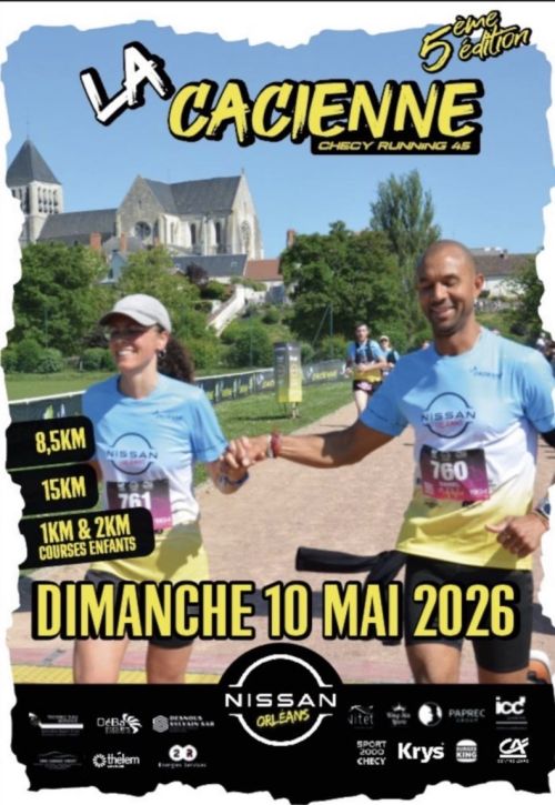 Course nature "La Cacienne" de 8 ou 15 Km. Plus une course de 1 ou 2 Km pour les enfants. Une seule boucle, tout terrain pour les 2 distances, accessible à tous, idéal pour découvrir Chécy, Mardié et Combleux en empruntant des chemins de halage et sentier du bord de Loire.