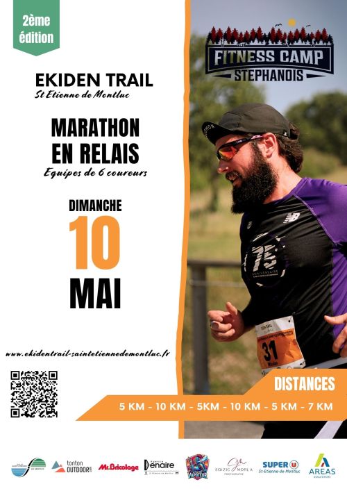 Organisé par le Fitness Camp Stéphanois, l’EKIDEN TRAIL de Saint Etienne de Montluc est un moment fort de la vie sportive stéphanoise. L'EKIDEN TRAIL est une course par équipe ou chaque participant relève un défi en courant une section d'un parcours varié et exigeant, alternant sentiers, chemins forestiers et vues panoramiques.