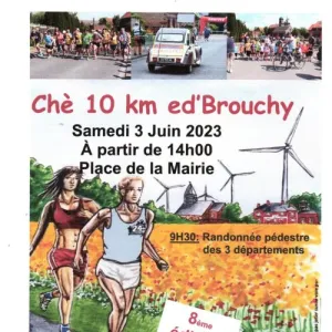 Chè 10 km Ed'Brouchy sur un parcours plat. Récompenses a tous les concurents : t-shirts et lots divers. tirage au sort de lots de valeurs (bons d'achats etc.....)