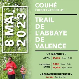 Le Trail de l’abbaye de Valence est organisée par l’Escale, le CAIC et l’UVC Couhé, sur le site de l’Abbaye de Valence à Couhé (86), sur sentiers et chemins (95%), comprenant une course découverte d'environ 10 km et un Trail d'environ 25 km.