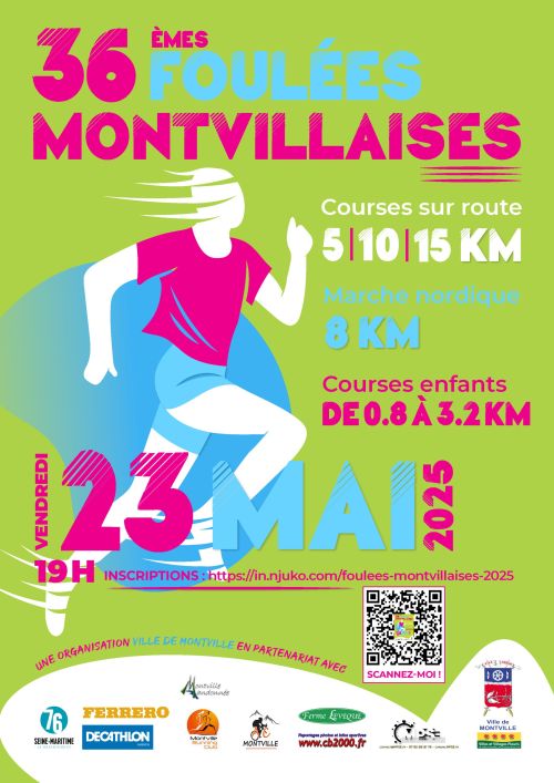 Course organisée par la Mairie de Montville. Course adulte pédestre qui emprunte les rues de Montville, au départ de la mairie à 19h (parcours de 5, 10 ou 15 km). Le départ de la marche nordique aura lieu à 19h10, en face de la mairie