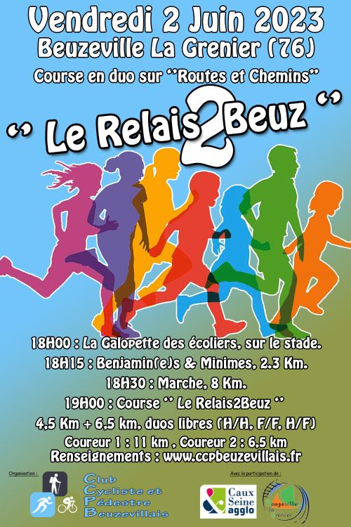 Une équipe de 2 coureurs (H/H, F/F, H/F). Le 1ere relayeur part pour une boucle de 4,5 Km, à la fin de cette boucle il/elle part pour une boucle de 6,5 Km avec son équipier. Le coureur n°1 fera 11 Km, et le coureur n°2 6,5 Km, le parcours se fera sur la route et dans des chemins. l'épreuve est ouverte également aux individuels(elles)