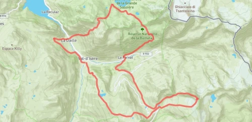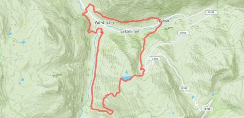La principale difficulté se situe en tout début de parcours avec la montée vers le lac de l’Ouillette par la vallée du Manchet, petite perle perchée à 2500m. Vue imprenable sur Val d’Isère ! Après avoir fait le tour du lac, nous redescendons par la combe du Laisinant vers le village du Fornet.
