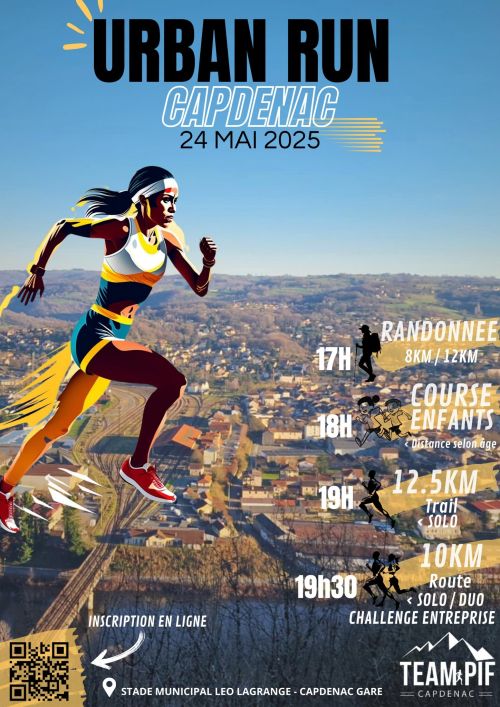 Urban Run Capdenac avec un trail, un 10km, des courses enfants et randonnées.