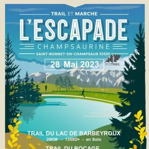 L’escapade champsaurine comprend : • Course de trail sur 13.5 km avec 380 m de dénivelé positif : « Trail du bocage ». • Course de trail sur 21.5 km avec 650 m de dénivelé positif : "Trail Contrefort du Pic Queyrel". • Course de trail sur 30.5 km avec 1350 m de dénivelé positif : « Trail de Barbeyroux ». • Marche sur 13 km : « Marche du bocage ». • Courses enfants dans le village.