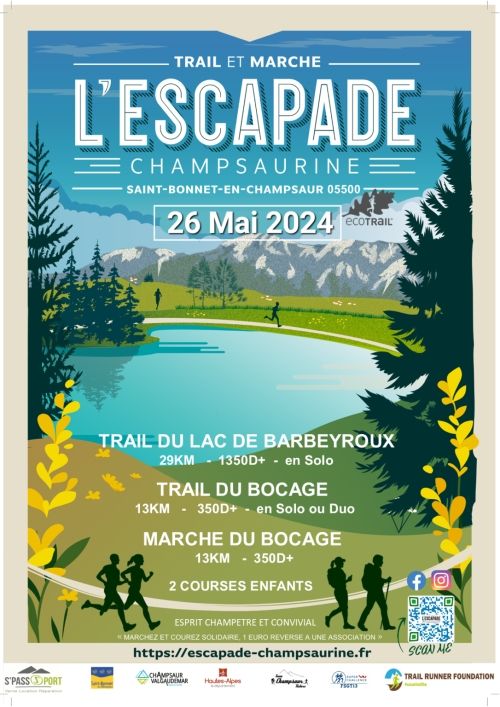 Escapade Champsaurine, Trails et Marche de Saint Bonnet en Champsaur C'est reparti pour la 4ème édition qui se déroulera le 26 mai 2025, à Saint-Bonnet-en-Champsaur. Cette année nous vous offrirons un vrai repas champsaurin et nous voulons donner l'accessibilité à nos parcours à un maximum de personnes en donnant l'accès aux Joelettes et aux personnes en sport adapté. Tous les parcours sont proposés en format SOLO ou DUO.