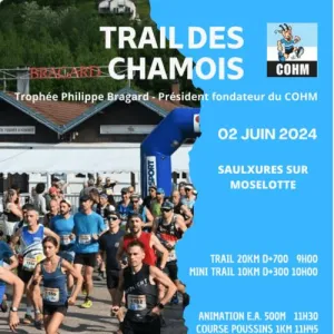 Le Club Olympique Haute Moselotte organise le Trail des Chamois avec 2 parcours trail au choix. Le départ se fait rue Jeanne D'ARC derrière la caserne des pompiers 88290 SAULXURES Sur Moselotte.