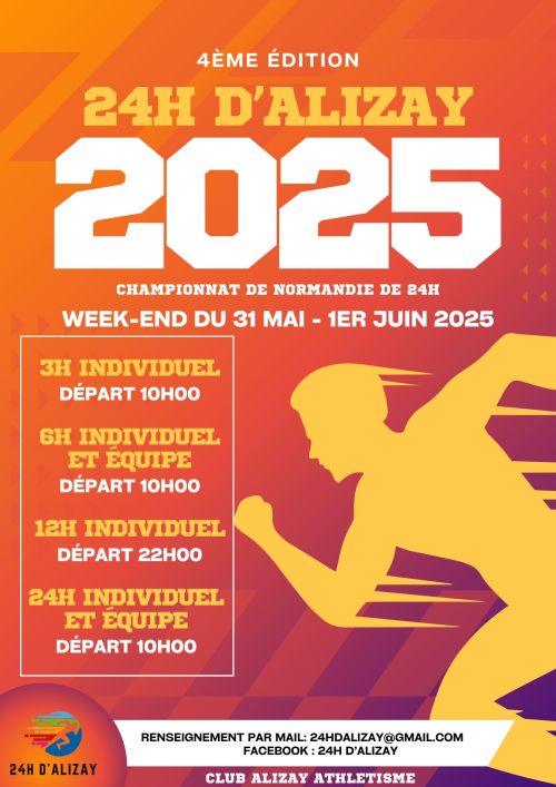 3h, 6h et 24h d'Alizay. Pour cette année nous avons décidé de rajouter l'option de constituer une équipe de 24 coureurs sur notre 24h par équipe et pourquoi pas voir les clubs, les entreprises ou même les collectivités s'alignaient sur notre épreuve unique dans le département pour le plaisir ou pour la performance !