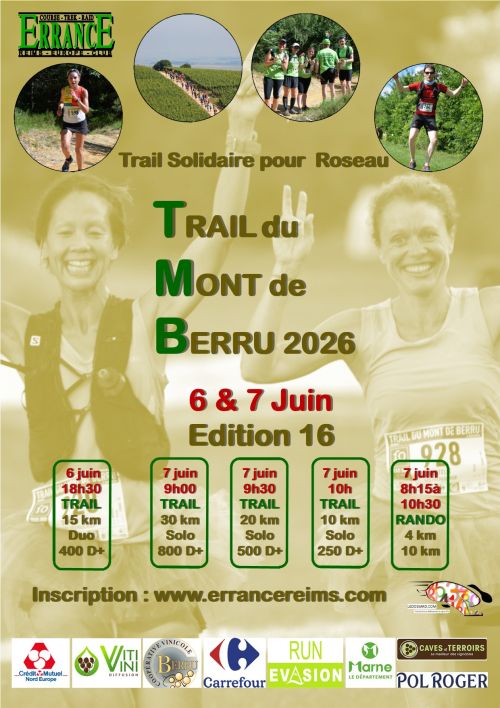 Course solidaire au profit de l'association "Roseau" de Reims. Trail en équipe de 2 ( Hommes / Femmes ou Mixte uniquement sur chemins (vignes, forets) Une récompense sera remise avec chaque dossard trail et chaque arrivant recevra un verre de bière ou autre boisson. Un tirage au sort après les podiums permettra d'attribuer une dizaine de lots. Récompenses aux 3 premiers de chaque catégorie (Hommes / Femmes /Mixte) du scratch.