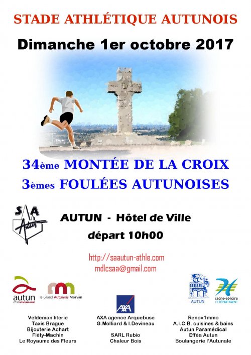 Départ 10h de l'Hôtel de ville, Parcours de 10,5 km avec une boucle au centre ville – Dénivelé + 431m - Ouverte à tous, à partir de Cadet - Arrivée à la Croix de la Libération Parcours de 6km départ en commun - Dénivelé +100m - a partir de minime - Arrivée Hotel de ville - Récompenses à 12h15 suivies d’un vin d’honneur à l'hôtel de ville. - 2 courses jeunes en ville : Inscription gratuite. Inscriptions : à partir de 8h30 a l'Hôtel de ville. Résultats le soir sur le site internet du club.