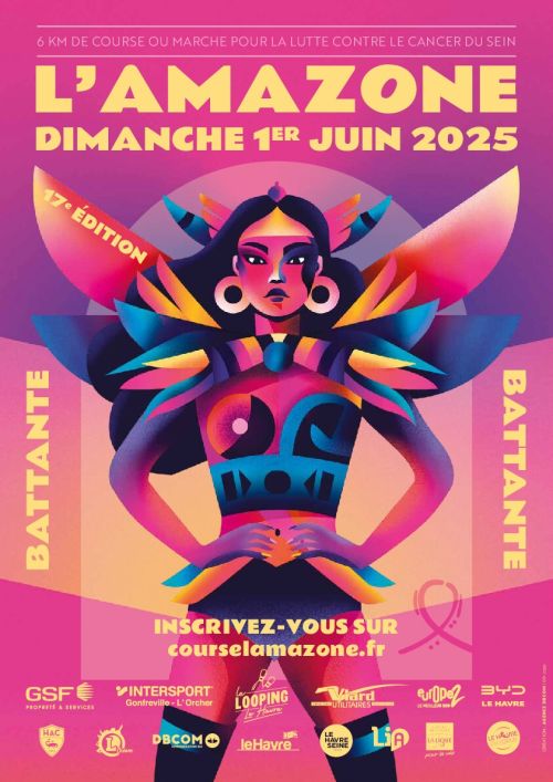 L'amazone est une course-marche féminine solidaire qui a lieu chaque premier dimanche de juin au Havre. Sur un parcours de 6 km, c'est toutes habillées d'un t-shirt rose labellisé L'amazone que les femmes courent ou marchent au profit de la lutte contre le cancer du sein.