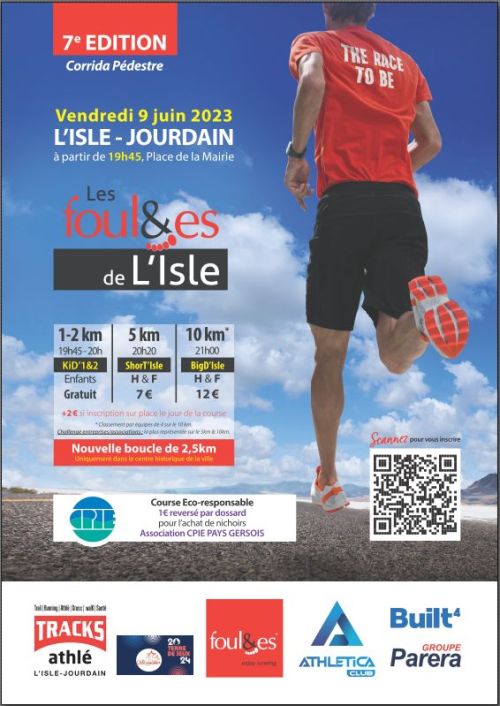 Le club TRACKS Athlé – L’Isle Jourdain 32 organise Les Foul&es de L’Isle, sa corrida pédestre dans les rues de L’Isle Jourdain. Tous les départs et arrivées des courses ont lieu à la place de la mairie.