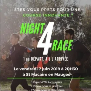 Course innovante par équipe de 4 personnes. Evénement organisé par l'Entente des Mauges. Le 1er coureur effectuera 2,5km seul, le 2ème le rejoindra, puis le 3ème, et enfin le 4ème. Les 4 coureurs termineront la course ensemble. De ce fait, le 1er coureur fera 10 km, le 2ème 7,5 km, le 3ème 5 km et le 4ème coureur fera 2,5 km pour finir ensemble.
