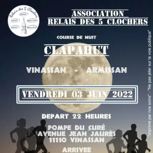 Le Clapahut est une course à pied de nuit reliant les 2 villages d'Armissan et de Vinassan dans l'Aude organisée par l'association "Relais des 5 clochers".