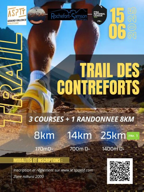 L’ASPTT Grand Valence Athlétisme, en partenariat avec la Mairie de Rochefort-Samson, organise un trail (course nature) sur les contreforts du parc du Vercors (Communes de Rochefort-Sansom).