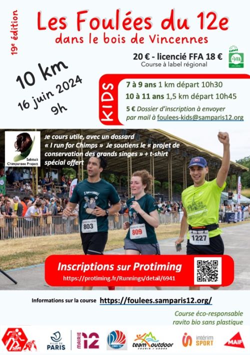 La course « Les Foulées du 12ème » est une course à taille « humaine » dans laquelle les adhérents de la « SAM Paris 12 » s’investissent en tant que bénévoles pour apporter leur expérience de coureurs aux participants qu’ils soient des Coureurs Expérimentés ou des Coureurs Loisirs. · Pour les Coureurs Expérimentés la certification du Label Régional de la FFA permet d’obtenir une qualification aux Championnats de France. Les performances sont prises en compte dans le classement FFA du coureur et celui de son Club au niveau national. · Les Coureurs Loisirs profitent d’un environnement répondant aux critères de la FFA pour le mesurage du parcours, les ravitaillements et la sécurité de l’évènement.