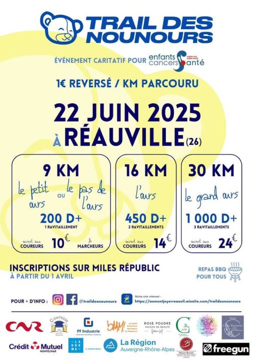 Le Petitours : 8 Km - 200 m D+. L'Ours : 18 Km - 600 m D+. Le Grandours : 26 Km - 900 m D+. Les Pas de l'Ours : parcours marche à pied sur le parcours du 8 Km.
