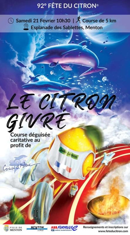Le Citron Givré est une course solidaire de 5 km organisée par la Ville de Menton en partenariat avec l’association Menton Marathon. Elle se déroule dans le cadre de la Fête du Citron®, manifestation annuelle qui célèbre les agrumes. Le parcours part et arrive sur l’esplanade des Sablettes, longe le bord de mer, passe par le stade Rondelli et le Vieux-Port. Il offre des vues sur la Méditerranée et se déroule dans un cadre côtier agréable, avec le soleil d’hiver caractéristique de la région.