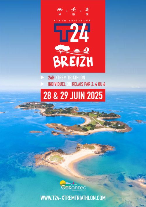 Située dans la baie de Morlaix, Carantec t’accueille les 28 & 29 juin 2025 pour parcourir la plus longue distance en 24H. 4h de natation + 12h de vélo + 8h de course à pied. -> + d'infos sur notre site