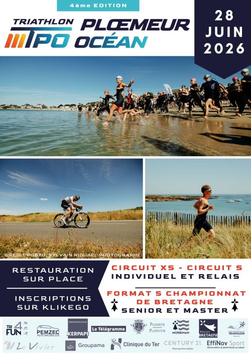 PLŒMEUR TRIATHLON est très heureux de vous annoncer la 4ème édition de son évènement "TRIATHLON PLŒMEUR OCÉAN". Comme les années précédentes, nous vous proposons deux triathlons (XS et S) sur le magnifique site de l'Anse du Stôle.