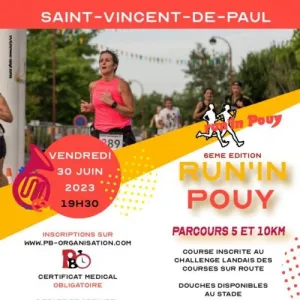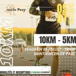 Dans le cadre des fêtes de Saint-Vincent-de-Paul, le comité des fêtes vous invite à participer à la Run’In Pouy. Au programme 2 parcours dans les rues vincentiennes, un 10km et un 5km avec une ambiance conviviale.