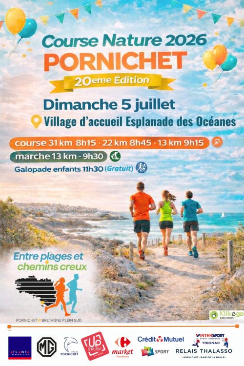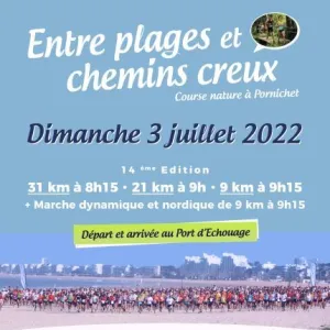 20ème édition de la course Entre plages et chemins creux organisée par le club Courir Ensemble Pornichet Côte d’Amour sur circuit alternant plages et chemins.