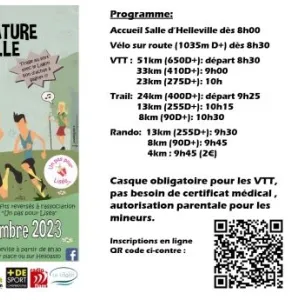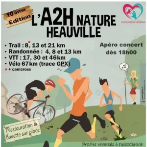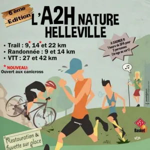 La course A2H Nature se déroule à Helleville, dans la Manche, en Normandie. Le parcours traverse des chemins de campagne, des forêts et offre des vues sur la côte normande. Adaptée à tous les niveaux, elle propose trails, VTT, randonnées et gravel, de 9 à 74 km. Venez profiter de ce cadre naturel et relever le défi !