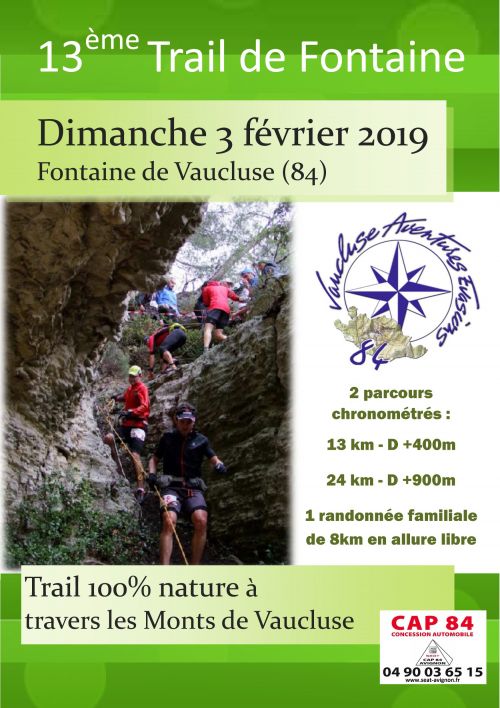 Le Trail de Fontaine de Vaucluse vous propose deux parcours chronométrés : un parcours long d’environ 24 km et 840m de dénivelé positif et un parcours court d’environ 12.8 km et 375m de dénivelé positif. Les parcours doivent être réalisés à pied par les concurrents et de manière individuelle.