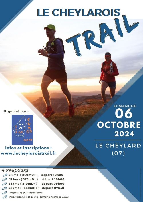 Le Cheylarois Trail se déroule à Le Cheylard, en Ardèche, au cœur des Boutières, une région montagneuse du Haut-Vivarais. Les parcours, variés et accessibles à tous niveaux, traversent sentiers et forêts, offrant des vues sur les paysages naturels de la Dorne, du Brion et des crêtes. Entre vallées verdoyantes et reliefs escarpés, cette course invite coureurs et randonneurs à découvrir un cadre authentique. Participez pour vivre une expérience sportive et conviviale en pleine nature ardéchoise.