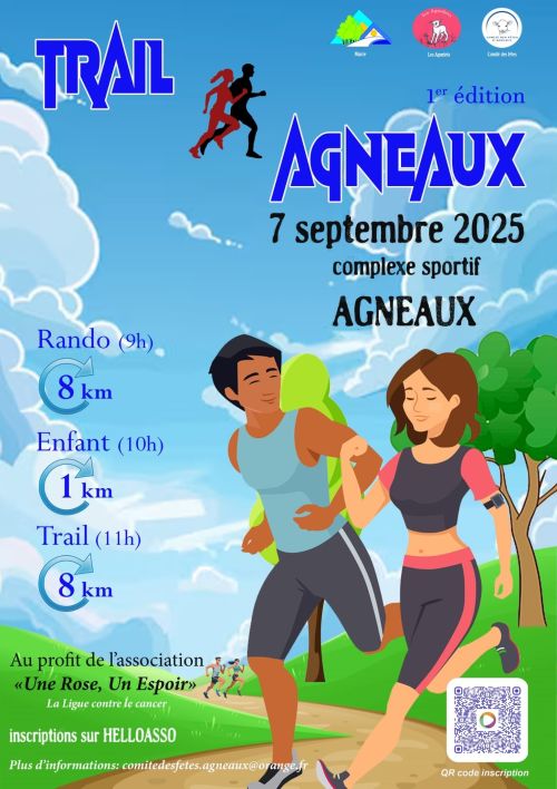 Le Trail d'Agneaux, organisé à Agneaux en Normandie, invite coureurs et randonneurs à découvrir un parcours unique au cœur de paysages verdoyants. Entre sentiers naturels et reliefs doux, cette course offre une immersion dans la beauté sauvage de la région, avec des vues imprenables sur la campagne normande. Organisé par le comité des fêtes d'Agneaux et les Agnelets, cet événement soutient la lutte contre le cancer. Venez nombreux pour une expérience sportive et solidaire inoubliable !