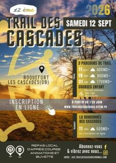 L'association Sportive de Roquefort-les-Cascades organise la 12ème édition du Trail des Cascades sur le territoire des communes de Roquefort-les-Cascades, Leychert, Roquefixade