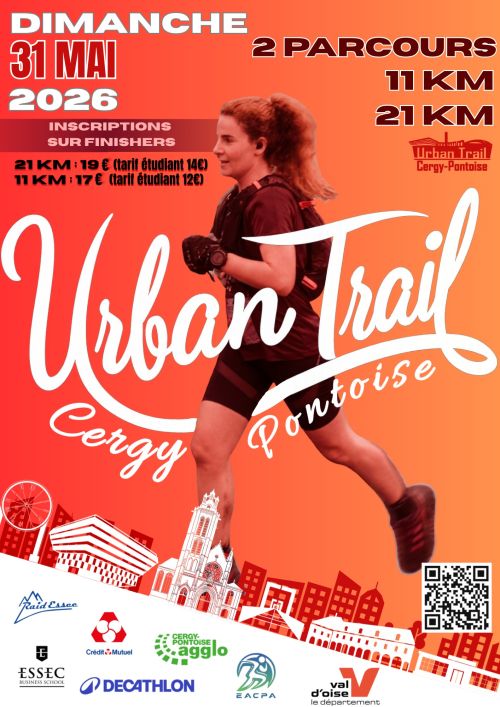 L'Urban Trail de Cergy-Pontoise te permet de découvrir deux villes notables d'Île-de-France, les deux préfectures du 95, Cergy et Pontoise. Accessible facilement depuis Paris grâce au RER A 🚉, l'agglomération accueille notamment les étudiants de l'ESSEC. L'association Raid ESSEC a eu l'idée d'organiser cette course 🏃♂️ pour mettre en lumière les beautés des deux communes. Ce trail te fera voir toutes leurs facettes : aussi bien les rues que les espaces verts qui jalonnent le parcours. Deux distances sont proposées : le 11 km t'offrira un tracé très urbain, avec un passage devant le château de Marcouville 🏰 et un bon kilomètre à longer l’Oise avant de faire volte-face et de retourner au gymnase Marie Laurencin pour l'arrivée. Le 22 km offre un tracé similaire, avec un détour supplémentaire par le bois de Saint-Antoine 🌳.