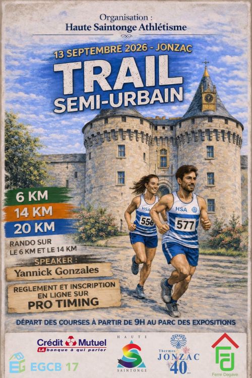 Trail Semi Urbain Jonzacais : course en boucle, départ et arrivée parc des expositions de Jonzac.