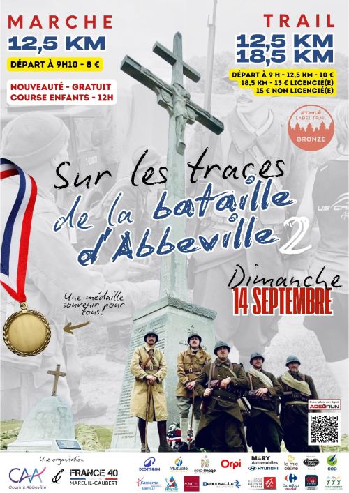 La course Sur les Traces de la Bataille d’Abbeville se déroule à Abbeville, dans la Somme, au cœur des Hauts-de-France. Ce trail et cette marche traversent des paysages variés, mêlant sentiers naturels, monts de Caubert et sites historiques liés à la bataille de 1940. Organisé par le club Courir à Abbeville et France 40, l’événement propose des parcours de 12,5 km et 18,5 km, accessibles dès 16 ans, ainsi qu’une course pour enfants. Venez courir ou marcher dans un cadre chargé d’histoire et de nature, et participez à un moment sportif et mémoriel unique.
