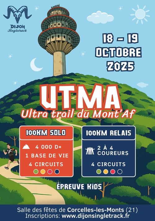 L’UTMA est un ultra trail de 100km et 4000m de dénivelé positif à parcourir en solo ou en relais de 2 à 4 coureurs. Le parcours a été imaginé en 4 boucles différentes à enchaîner autour d’une base de vie centrale : la salle des fêtes de Corcelles-les-Monts (21).
