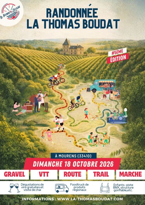 Le dimanche 18 octobre 2026, l'événement La Thomas Boudat revient pour une nouvelle édition encore plus festive, sportive et conviviale au cœur des paysages magnifiques de Mourens (33).
