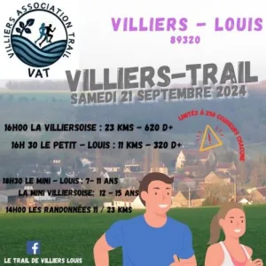 Le Trail de Villiers-Louis est une course nature organisée dans le village de Villiers-Louis, situé en Bourgogne, dans le département de l'Yonne. Les parcours traversent des sentiers boisés et des chemins ruraux typiques de la campagne sénonaise, offrant un cadre calme et verdoyant. Rejoignez cet événement pour découvrir la région à pied.