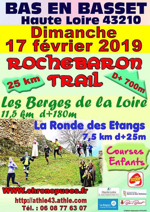 Le Club d'athlétisme ATHLE43 en partenariat avec la Commune de BAS EN BASSET, organise le ROCHEBARON'TRAIL. Départ et arrivée de chaque épreuve salle FABRO, place des Droits de l'Homme.