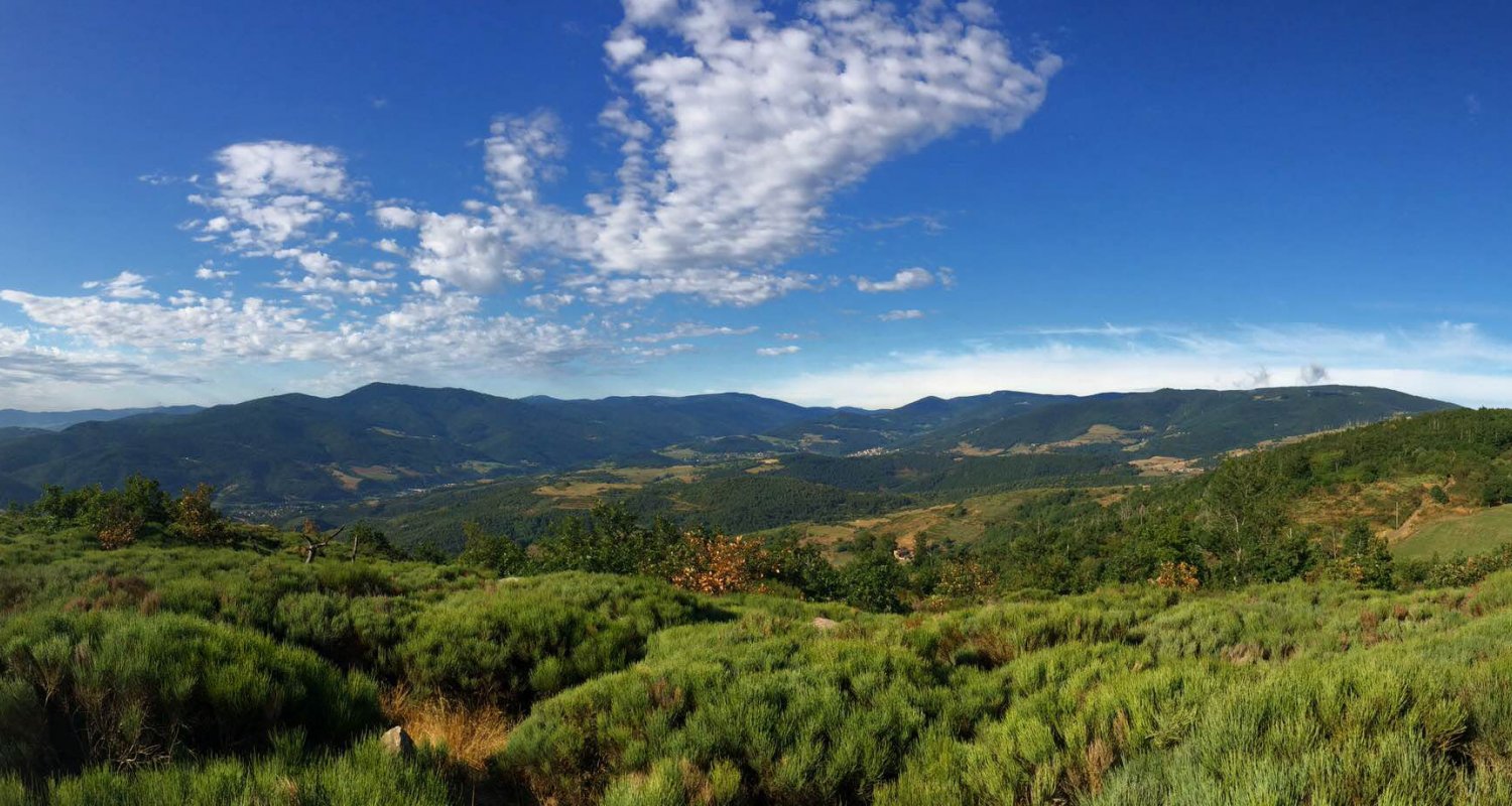 Les montagnes du Haut Vivarais, à mi-chemin entre petites collines et cols alpins, vous offriront un terrain de jeu idéal pour goûter tous les plaisirs du trail. Ce vagabondage, entre l’Ardèche et la Loire, vous emmènera sur toutes les cimes que votre regard pourra embrasser depuis les hauteurs du village. De la croix de Chirol au col de la Chamrousse, en pas- sant par le village médiéval du Monestier, en rejoignant le Grand Feltin, en grimpant le Chirat Blanc et en vous hissant au sommet de la Roche des vents, vous pourrez ressentir pourquoi les gens du coin sont viscéralement attachés à leur » païs ». De la couleur, des chemins, des monotraces, de la pleine forêt, du dénivelé, des kilomètres...