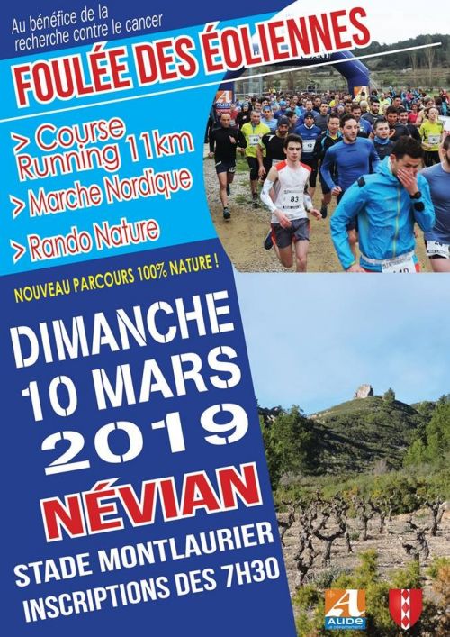 La Foulée des Eoliennes aura lieu au départ et à l'arrivée du Stade Montlaurier de Névian. Comme d'habitude, la Mairie de Névian ainsi que l'ensemble des bénévoles ont préparé cette matinée sportive avec passion et envie de faire découvrir au plus grand nombre ce magnifique territoire névianais.